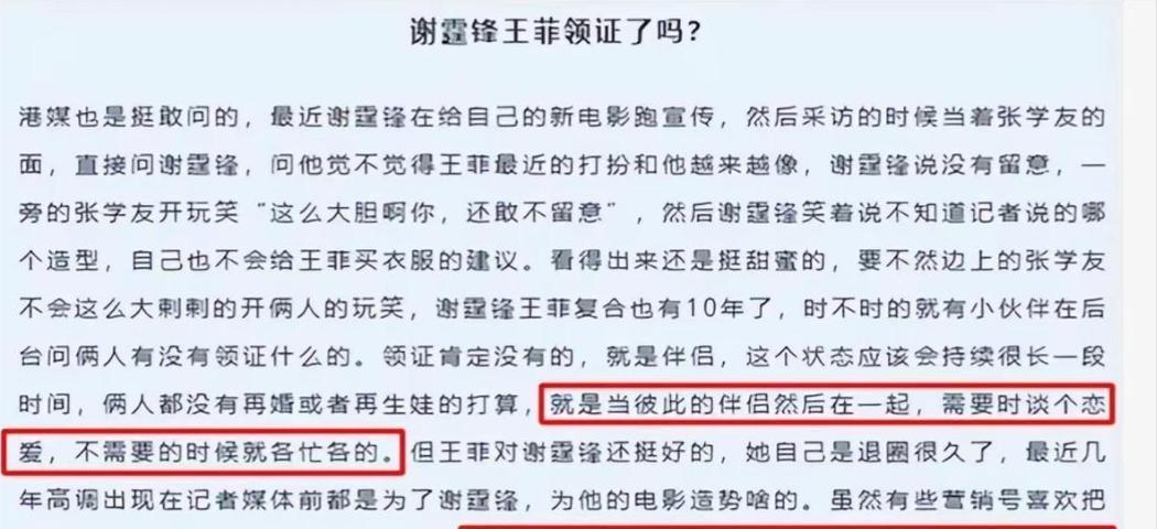 再相遇时,他们都已不是当年那个相信一纸证书就能锁住余生的年纪。 于是干脆跳过仪式、跳过官宣、跳过所有外界期待的“标准动作”,只留下最朴素的两个字:相处。 你别急着说冷淡——冷的不是感情,是他们对现实的清醒度。 如今的谢霆锋,肩上扛着的哪只是自己?上有父母,下有孩子,中间还连着一整个商业版图。 结一次婚,不只是改个称呼,是法律文书一签,财产结构、继承序列、税务安排……全得重排。 这不是浪漫冲动,是系统级重构。他当然懂。 至于王菲?别再用“不食人间烟火”来美化她了——她只是早就不靠“妻子”这个头衔来安放自己。